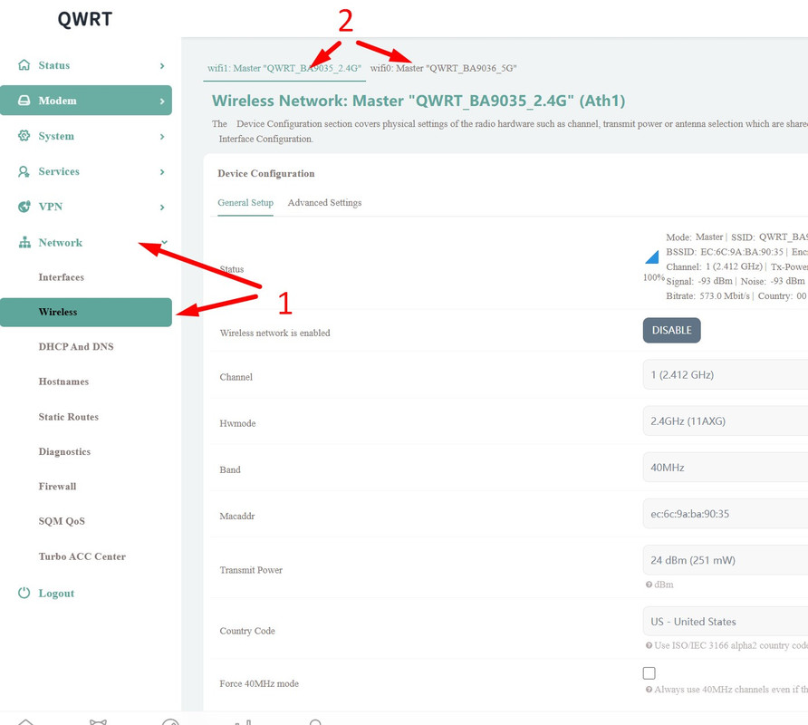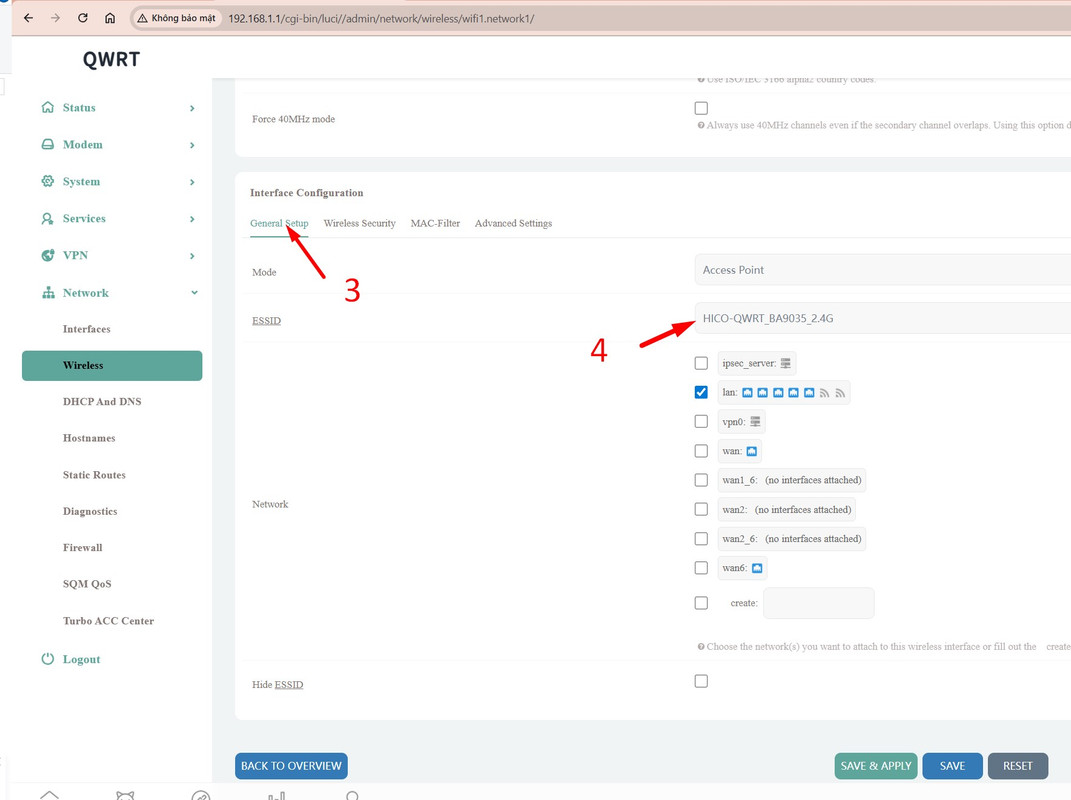 - Vào Network >> Wireless ( 1)