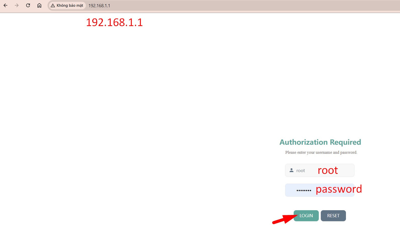 Đăng nhập trang quản trị: Mở trình duyệt web và nhập địa chỉ 192.168.1.1 (không tìm trên Google)