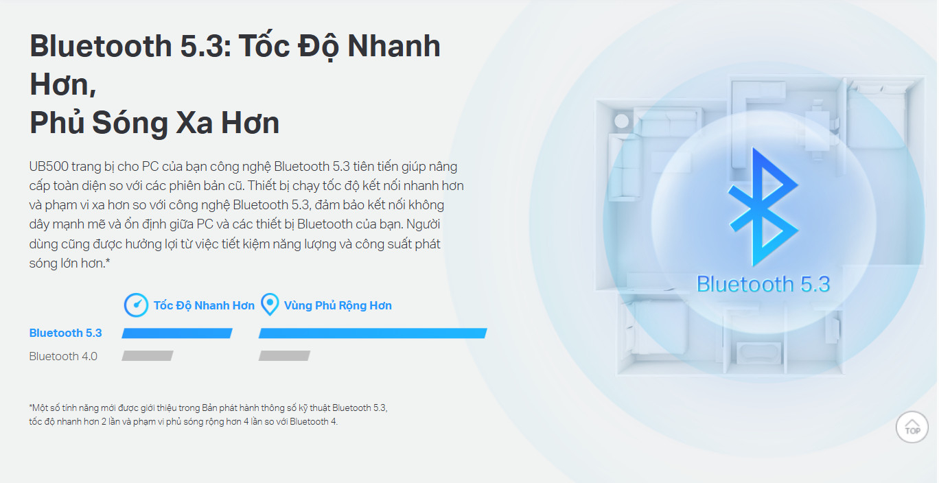 UB500 trang bị cho PC của bạn công nghệ Bluetooth 5.3 tiên tiến giúp nâng cấp toàn diện so với các phiên bản cũ. Thiết bị chạy tốc độ kết nối nhanh hơn và phạm vi xa hơn so với công nghệ Bluetooth 5.3, đảm bảo kết nối không dây mạnh mẽ và ổn định giữa PC và các thiết bị Bluetooth của bạn. Người dùng cũng được hưởng lợi từ việc tiết kiệm năng lượng và công suất phát sóng lớn hơn.*